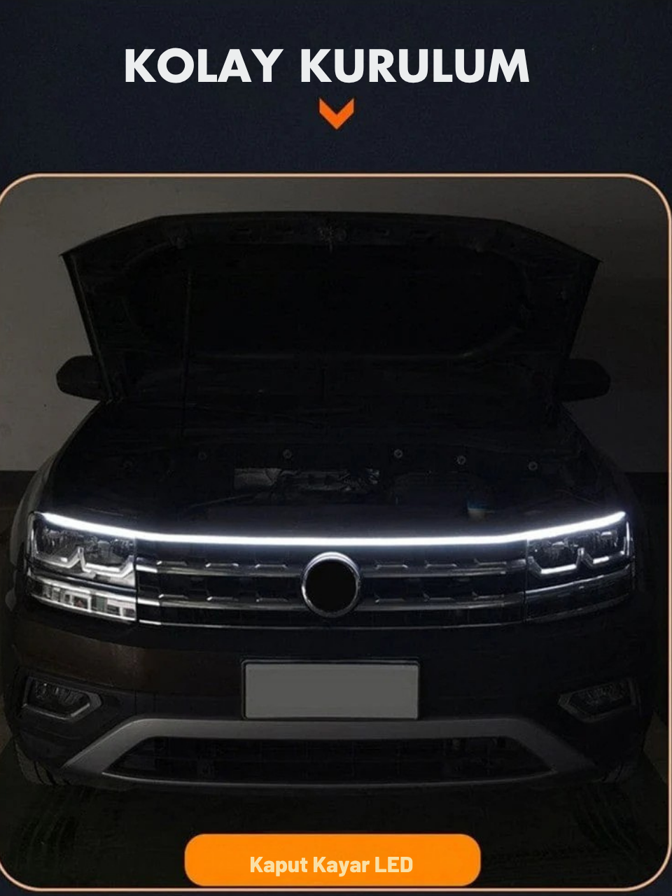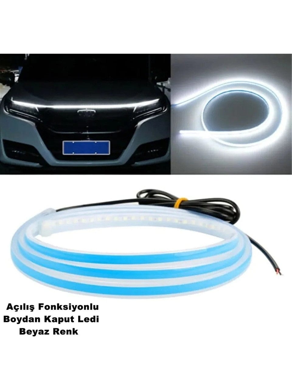 Açılış Fonksiyonlu Boydan Kaput Kayar LED Şerit, aracının ön kaput çizgisine monte edilerek şık bir gündüz farı veya dekoratif ışık efekti sağlar. Açılış animasyonu sayesinde aracını çalıştırdığında dinamik bir akış efektiyle profesyonel bir görünüm sunar.